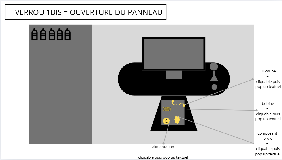- Phases de jeu : Dessins détaillant chaque verrou, de la découverte de la panne à la résolution des problèmes.